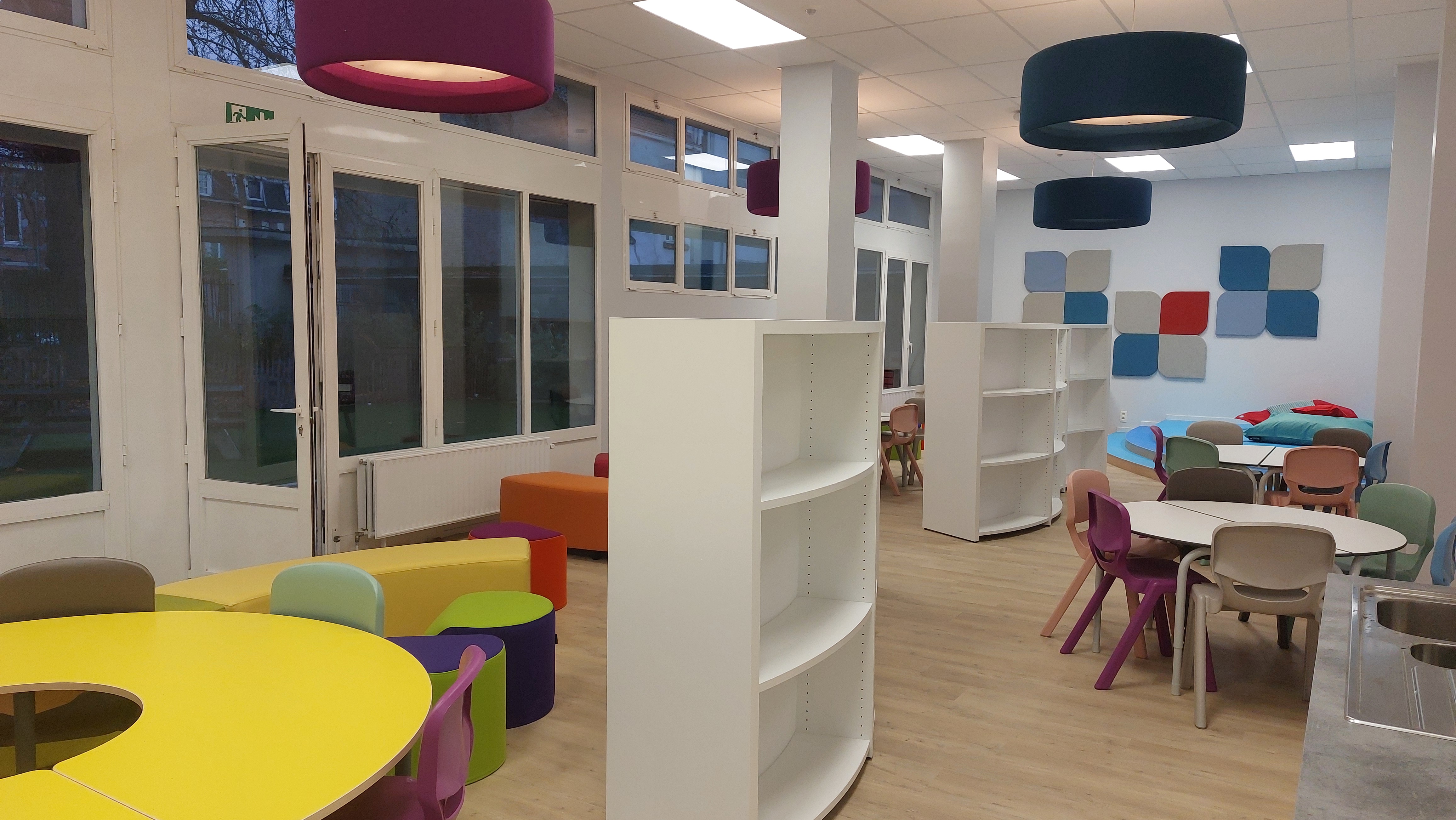 Dans la continuité de ces réalisations, de nouvelles rénovations ont été réalisées afin d’améliorer le fonctionnement et l’accueil de l’école primaire. Ces travaux ont permis de regrouper ou réaménager plusieurs locaux et de créer une entrée plus fonctionnelle pour les élèves, les familles et le personnel. Les travaux concernent notamment le hall d’entrée, la salle des professeur·es, la garderie, les bureaux de la direction et du secrétariat, la bibliothèque ainsi qu’un petit réfectoire.