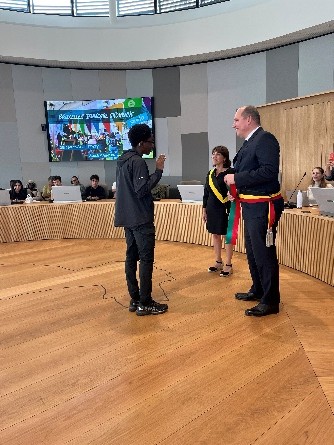 Deux fois par an également, les jeunes conseillers présentent le bilan et leur perspective de travail devant l’Échevine de la Jeunesse lors d’une assemblée plénière dans la salle du Collège, haut lieu de démocratie locale. Au-delà de la dimension symbolique importante qui renforce les Conseils de jeunes, ce moment de rassemblement permet de valider/ valoriser les actions menées et de recevoir le soutien de l’Échevine de la Jeunesse. Ainsi par exemple, tous les Conseils de jeunes ont présenté les sujets qu’ils ont choisi de porter cette année pour sensibiliser les autres jeunes (prévention des assuétudes, prévention de la désinformation, prévention du cyberharcèlement, prévention du harcèlement scolaire, lutte contre la fastfashion).